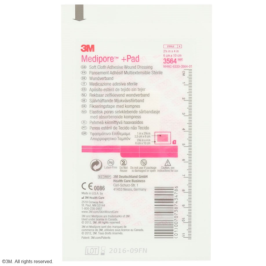 Medipore™ + Pad ist ein steriler Fertigverband mit einer nicht anhaftenden, absorbierenden Wundauflage. Überall da, wo es schnell gehen soll bietet er eine sichere und leichte Applikation in der Wundversorgung. Er ist weich, anschmiegsam und atmungsaktiv. Die Wundauflage absorbiert Sekret ohne an der Wunde anzuhaften. Medipore™ + Pad hat abgerundete Ecken und verhindert so ein vorzeitiges Ablösen des Verbandes. Er besteht aus einem Sontara-Polyestervlies, der Klebstoff ist ein hautfreundliches Polyacrylat.