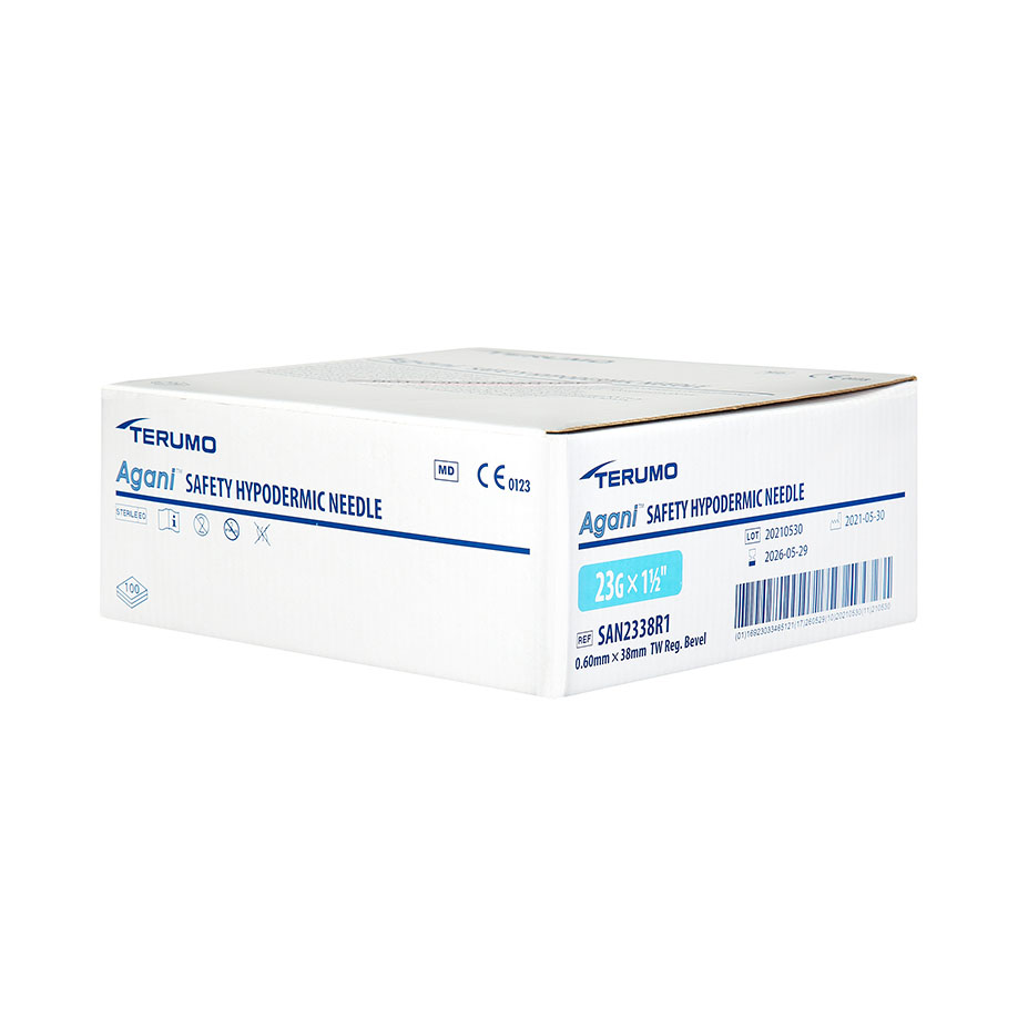 Agani Sicherheits-Injektionskanülen 23 G x 1 1/2'' (100 Stck.) 0,60 x 38 mm, blau UK = 8 Pack