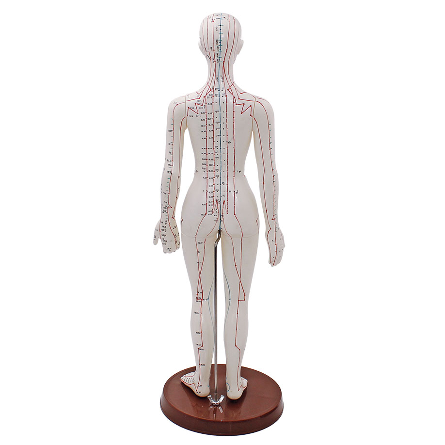 Akupunkturmodell des menschlichen Körpers aus Kunststoff mit einer weichen, hautähnlichen Oberfläche; die einzelnen Akupunkturpunkte und Meridiane sind mehrfarbig angelegt, das Modelle ist ideal zum Üben und Veranschaulichen der einzelnen Therapieformen; ganz nebenbei werden neue Patienten durch dieses Modell darauf aufmerksam gemacht, dass Akupunktur als Therapieform in der Arztpraxis angeboten wird.