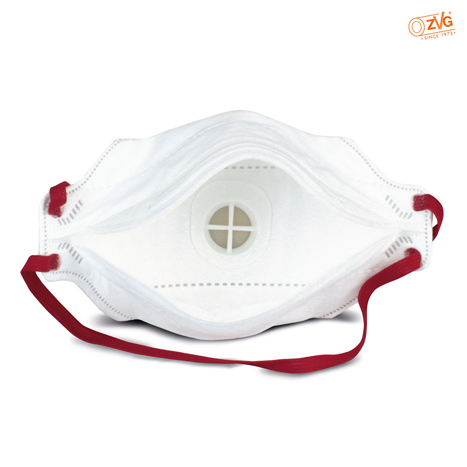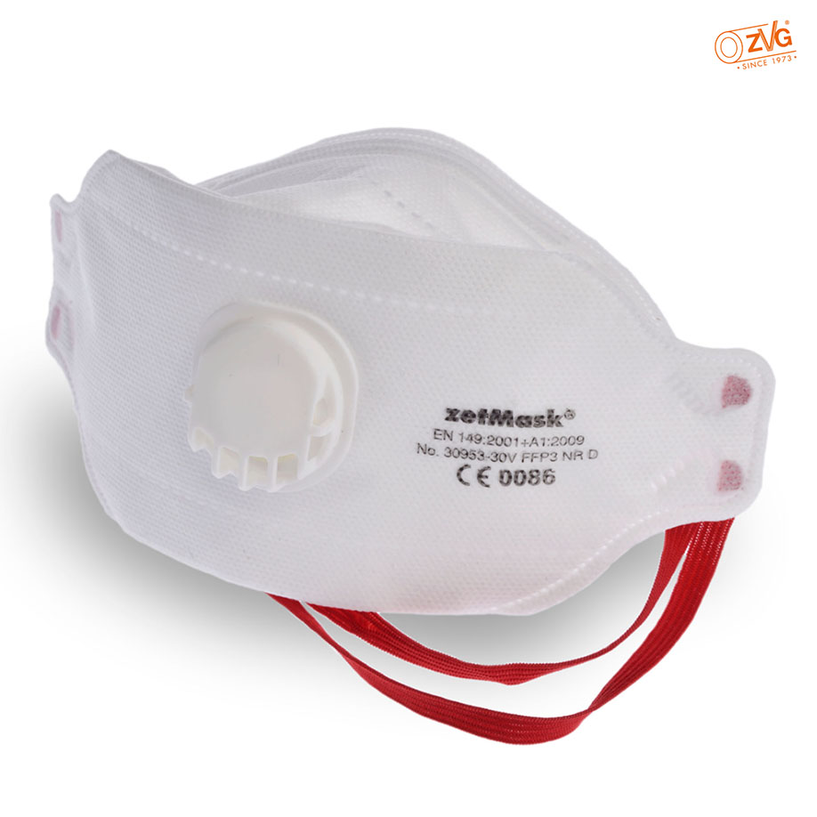 Einweg-Atemschutzmaske mit Ausatemventil zum Schutz gegen feste und flüssige Partikel gesundheitsschädlicher, giftiger Stoffe wie Sporen, Bakterien etc., z.B. für den Einsatz in Müllverbrennungsanlagen, in der Pharmaindustrie oder im chemisch-technischen Bereich
