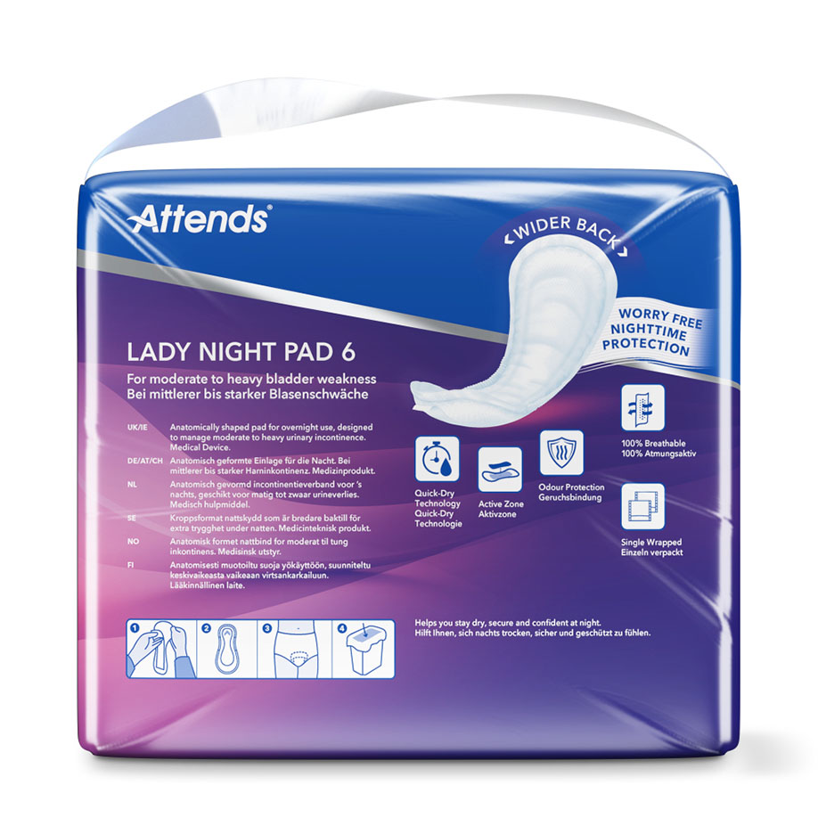 Attends Lady Night Pad 6, Inkontinenzeinlagen (30 Stck.) UK = 4 Pack