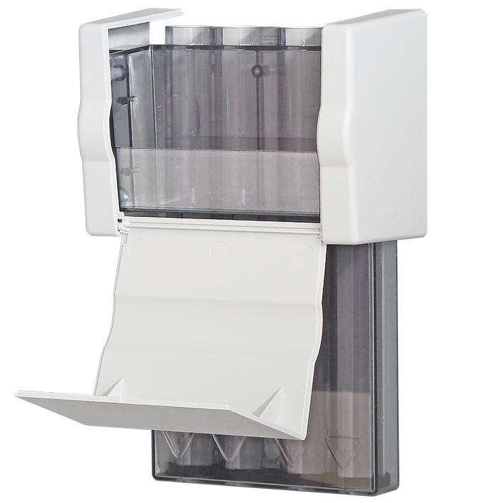 Aufbewahrungsbox mit Ablagefach für Einmal-Ohrtrichter der Serie 524