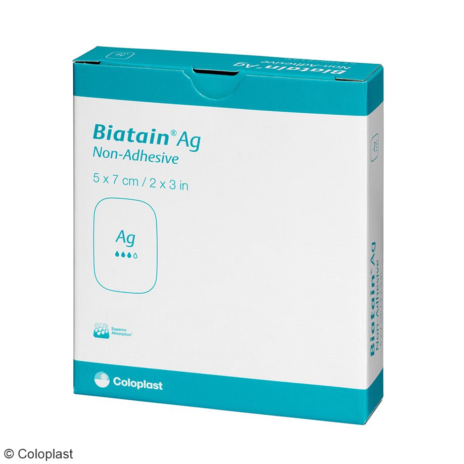 Der Biatain Ag Schaumverband ist weich, hoch absorbierend und auch in Kombination mit Kompressionstherapie einsetzbar. Biatain Ag wirkt nachweisbar antibakteriell gegen die häufigsten Oberflächen- und Gewebebakterien in chronischen Wunden, Candida albicans sowie VRE und MRSA. Das Silber ist homogen im Biatain Ag Schaumverband verteilt. Bei Kontakt mit Wundexsudat wird bis zu sieben Tagen kontinuierlich Silber freigesetzt. Der nicht-haftende Biatain Ag ist in erster Linie für exsudierende Wunden mit stark vorgeschädigter Umgebungshaut angezeigt und zeichnet sich zusätzlich durch abgeflachte Ränder aus, wodurch das Auftreten von Druckstellen deutlich verringert wird. Um den nicht-haftenden Biatain Ag Schaumverband zu fixieren, wird ein Sekundärverband benötigt.