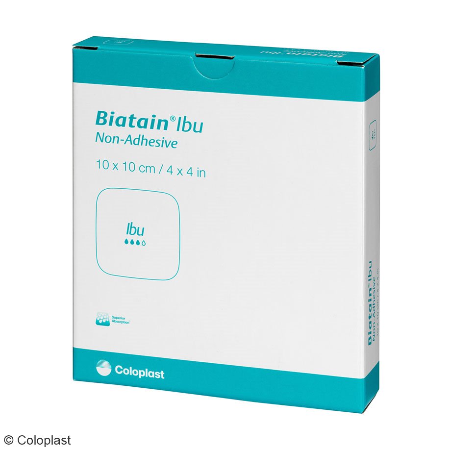 Biatain Ibu basiert auf der bewährten 3-D-Polymerstruktur von Biatain und ergänzt exzellentes Exsudatmanagement um die lokale kontinuierliche Freisetzung von Ibuprofen. Pro cm² sind 0,5 mg Ibuprofen homogen im Polyurethanschaum verteilt. In Abhängigkeit von der Exsudatmenge wird Ibuprofen lokal in die Wunde abgegeben. Biatain Ibu nicht-haftend eignet sich insbesondere für den Einsatz bei exsudierenden Wunden mit stark vorgeschädigter Umgebungshaut, die durch Gewebeschädigung schmerzen, sofern keine tieferen Schichten als die Haut betroffen sind.