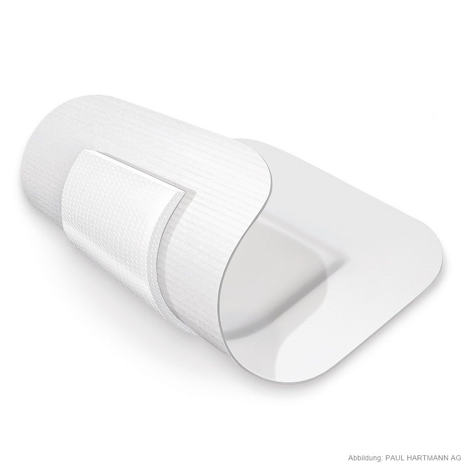 Selbstklebender Wundverband aus weichem Trägervlies und zentralem Wundkissen 6,5 x 3,8 cm, einzeln eingesiegelt, die Wundkontaktschicht aus einem feinmaschigen Polyethylen-Netz verhindert ein Verkleben mit der Wunde, rasche Sekretableitung durch Drainageeffekt des Micro-Netzes, gute Saugkraft und Polsterwirkung, hautfreundlich durch hypoallergenen Polyacrylatkleber.