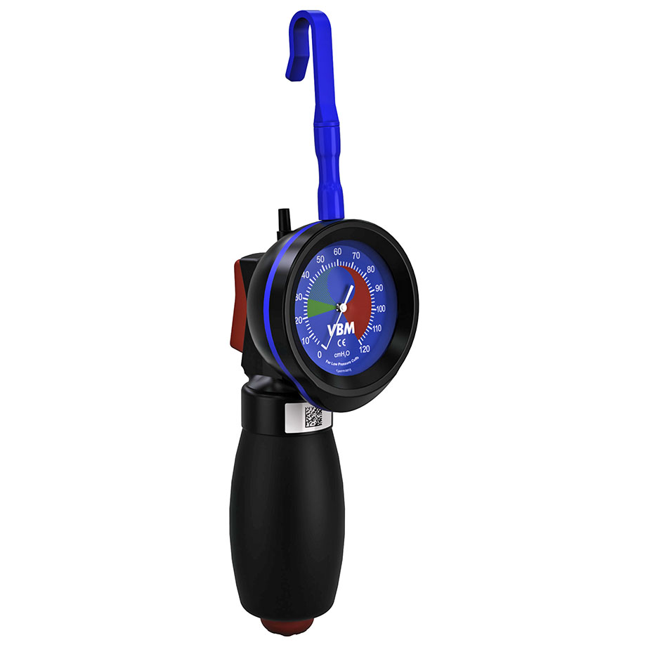 Das VBM-Cuffdruckmessgerät wird angewendet, um den Druck der Cuffs von Trachealtuben und supraglottischen Atemwegshilfen anzupassen und zu kontrollieren. Das ergonomisch geformte Cuffdruckmessgerät ist kompakt, robust und tragbar. Es zeichnet sich durch Genauigkeit und Präzision aus. Das analoge System ist unabhängig von Energiequellen und benötigt daher keine Stromversorgung oder Batterien. Die farbkodierten Bereiche auf der Skala helfen dabei, den idealen Druck anzuzeigen um den kapillaren Blutfluss in den Trachealschleimhäuten aufrechtzuerhalten.