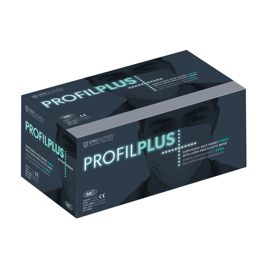 Einmal-Mundschutz Profil Plus, mit Gummizug, grün (50 Stck.) UK = 10 Pack
