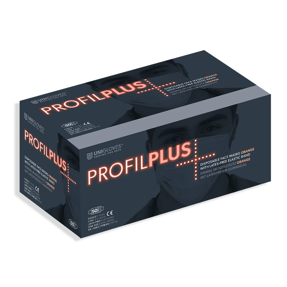 Einmal-Mundschutz Profil Plus, mit Gummizug, orange (50 Stck.) UK = 10 Pack