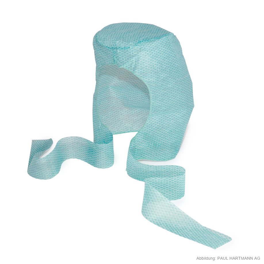 hohe Luftdurchlässigkeit und gute Wärmeregulation, reißfeste Verarbeitung mit Nahtverstärkung an besonders beanspruchten Stellen, aus atmungsaktivem, hautsympathischem Viskose-Vliesstoff, Helmform mit Kinnbändern, Vollschutz auch im Halsbereich, besonders geeignet für Bartträger