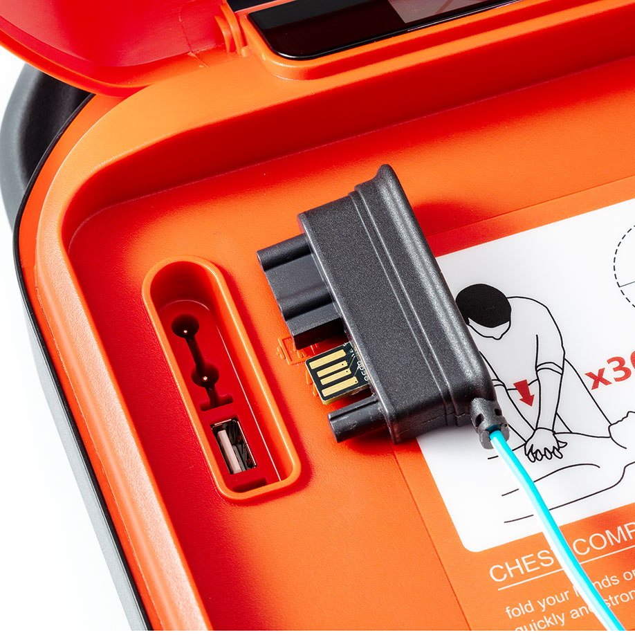 - automatische Aktivierung des AED bei Öffnung des Gerätedeckels für eine schnellstmögliche Inbetriebnahme