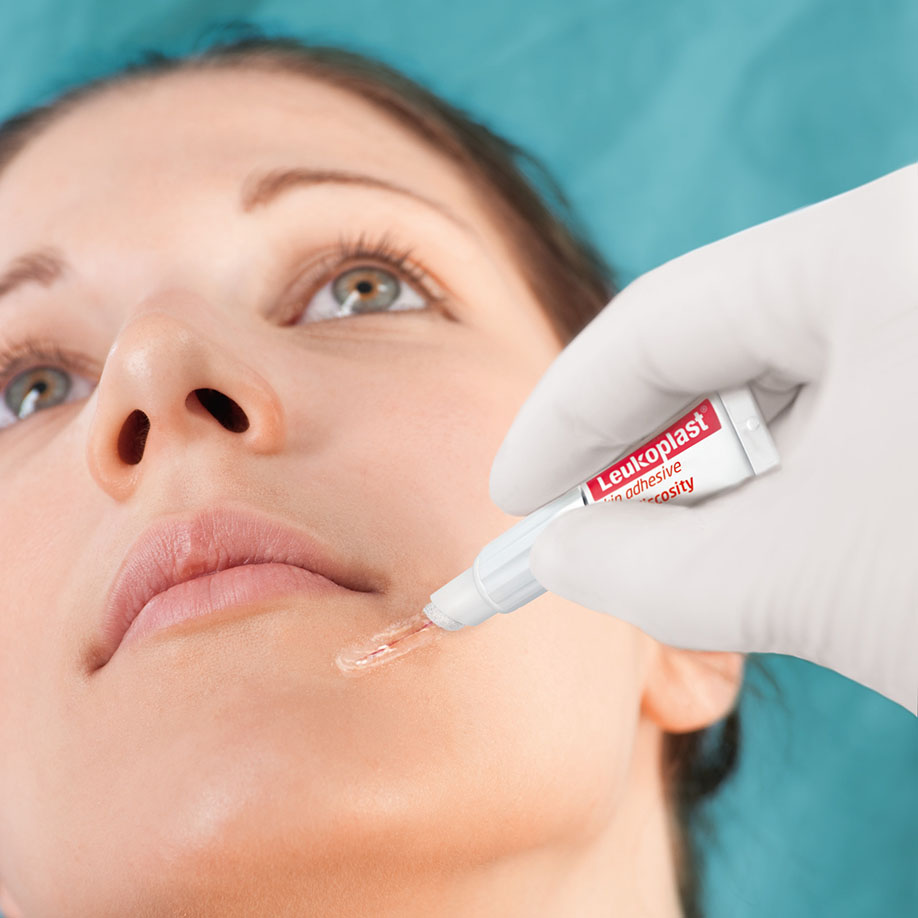 Leukoplast® skin adhesive ist ein steriler, visköser Hautkleber für den topischen Hautverschluss. Die hohe Viskosität ermöglicht ein präzises Auftragen von Leukoplast® skin adhesive und reduziert das Risiko eines versehentlichen Verlaufes des Hautklebers in unerwünschte Areale. Der Hautkleber sorgt mit nur einer Klebschicht für eine schnelle und einfache Applikation und passt sich der Haut flexibel an. Für ein vielseitiges Einsatzspektrum verfügt Leukoplast® skin adhesive über einen 2-in-1 Applikator. Die feine Seite des Applikators ist für einen präzisen Wundverschluss geeignet. Durch Umgreifen bietet die breite Seite darüber hinaus die Möglichkeit, einen breiten Schutzfilm aufzutragen.
