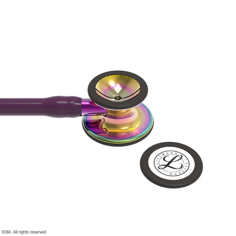 Littmann Cardiology IV Diagnostic Stethoskop High Polish Regenbogen Edition, Schlauch pflaume, Schlauchanschluss violett und Ohrbügel schwarz