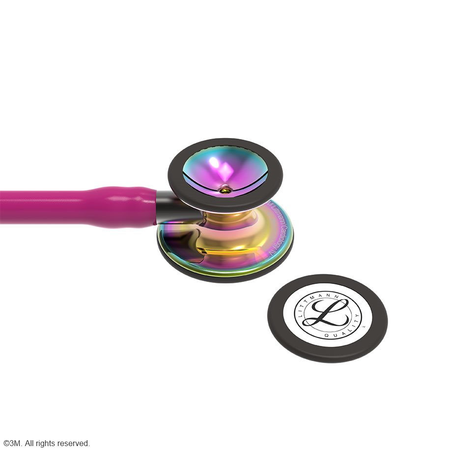 Littmann Cardiology IV Diagnostic Stethoskop High Polish Regenbogen Edition, Schlauch himbeere, Schlauchanschluss und Ohrbügel rauchfarben