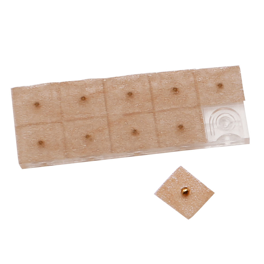 Auf hautfarbenem Pflaster einzeln eingesiegelt, vergoldet, 800 Gauß. Besonders geeignet für sensible Patienten, zur Druckstimulation der Ohrpunkte, verbindet die magnetischen Erkenntnisse mit der Theorie der TCM. Akupunkturmagnettherapie funktioniert durch die Magnetfelder auf den Haupt-, und Nebenkanälen sowie Reflexpunkten der Energiemeridiane. Die Magnetfelder durchdringen Haut, Gewebe und die Muskeln. Die Symptome werden dadurch positiv beeinflusst, durch die Lösung von Blockaden im Energiefluss der Meridiane.