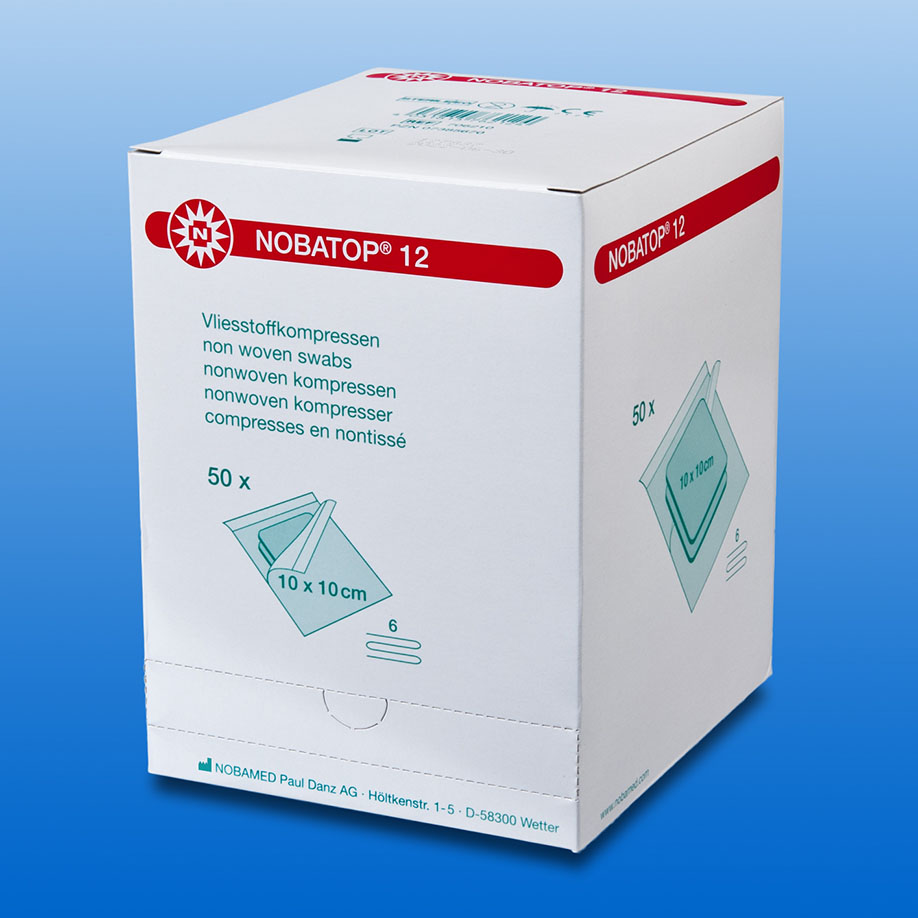 Produktinformationen "NOBATOP 12 Vliesstoffkompressen, 6-fach, 10 x 10 cm, steril (50x2 Stck.)"