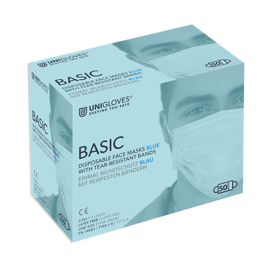OP-Mundschutz Basic, mit Bändern, blau (50 Stck.) UK = 10 Pack