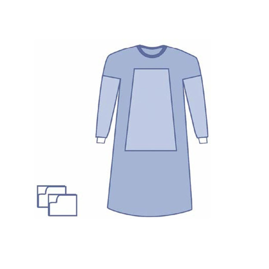 - ein SMS-Einschlagtuch enthält: 1 x SMMMS OP-Mantel materialverstärkt mit Klettverschluss im Nacken und 2 absorbierende Handtücher 39 x 30 cm, entfaltet