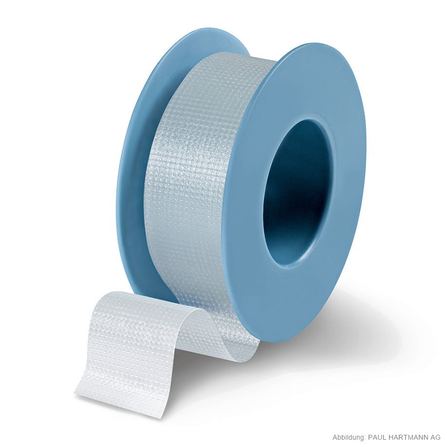 Aus poröser, transparenter Folie mit Polyacrylat-Kleber; schmutzabweisend, in Längs- und Querrichtung leicht reißbar, auf Kunststoffspule. Insbesondere geeignet zur transparenten Befestigung von Kanülen oder Schläuchen, um eine Kontrolle des Flüssigkeitsstandes zu ermöglichen.