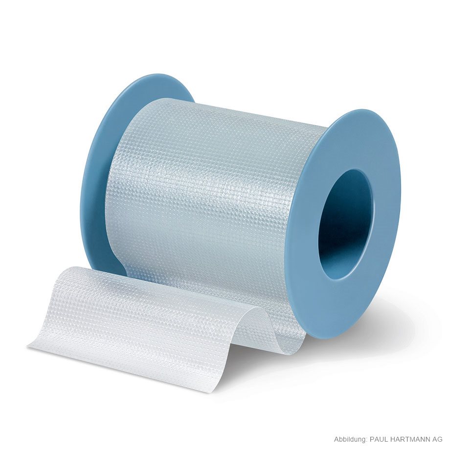 Aus poröser, transparenter Folie mit Polyacrylat-Kleber; schmutzabweisend, in Längs- und Querrichtung leicht reißbar, auf Kunststoffspule. Insbesondere geeignet zur transparenten Befestigung von Kanülen oder Schläuchen, um eine Kontrolle des Flüssigkeitsstandes zu ermöglichen.