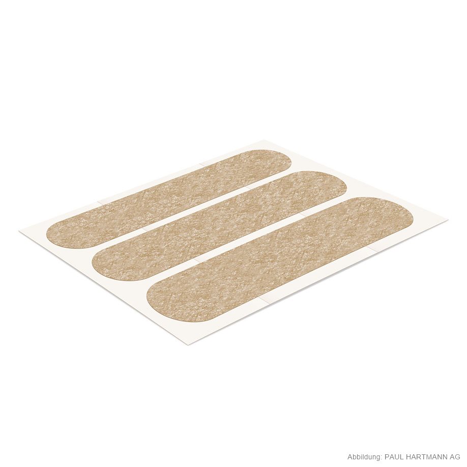Hypoallergene Wundnahtstreifen aus hautfarbenem Vliesstoff mit Polyacrylat-Kleber, mit abgerundeten Ecken, extrem luft- und wasserdampfdurchlässig, keine Mazeration, sicher haftend, schmerzlos und ohne Rückstände zu entfernen, strahlenindifferent, temperatur- und alterungsbeständig, eingesiegelt zu 4 Stück.