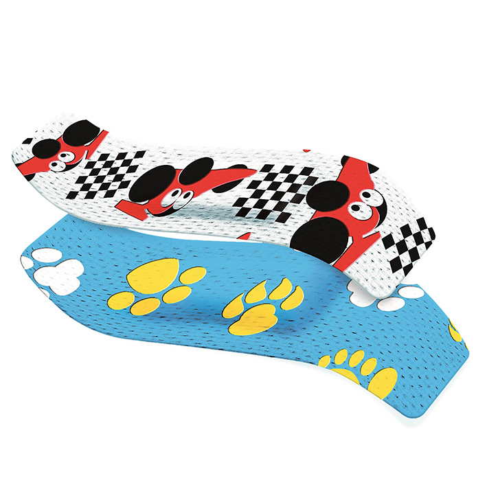 Bunte, einzeln eingeschweißte Pflaster mit saugstarker Wundauflage. In jeder Packung befinden sich zwei unterschiedliche Motive. Die Pflaster verkleben nicht mit der Wunde und sind mit hypoallergenem Hotmelt-Kleber besonders für die empfindliche Kinderhaut geeignet.