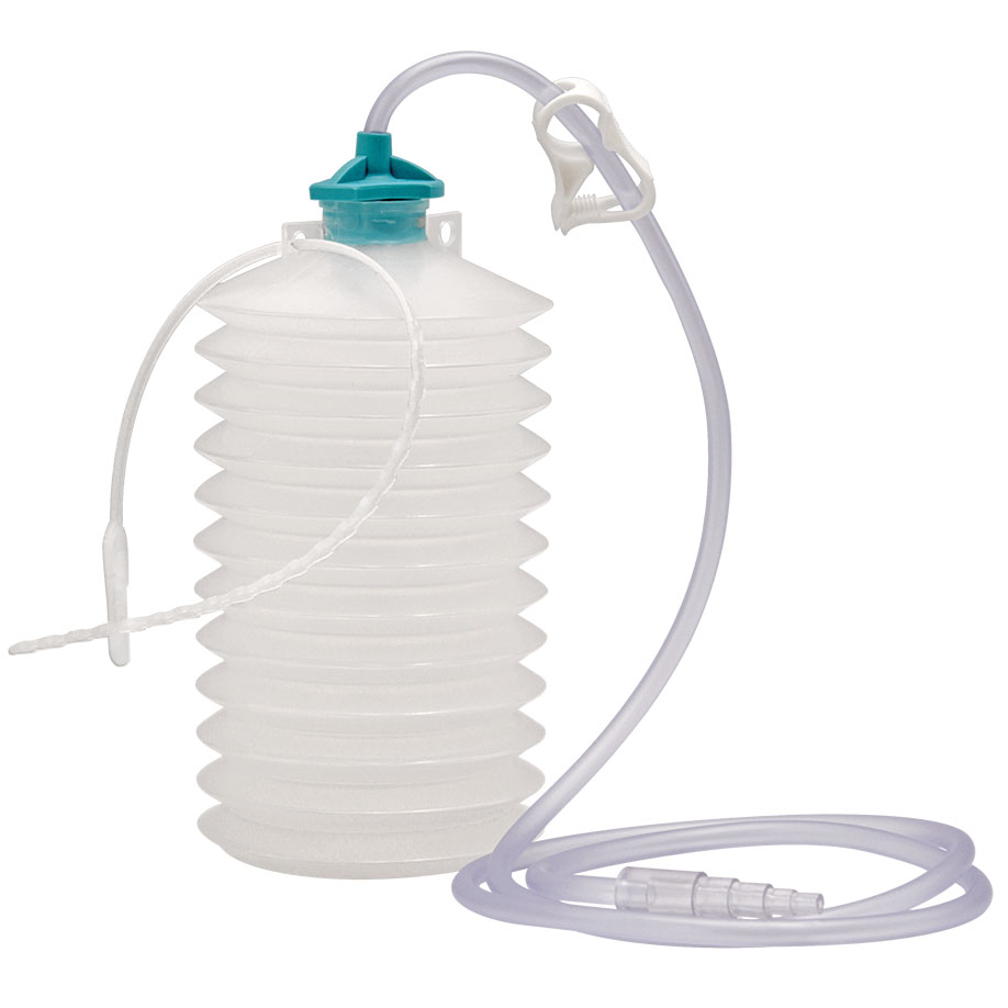 Redon Faltenbag-Drainageflasche aus PE zum Auffangen von Wundsekret und Körperflüssigkeiten.