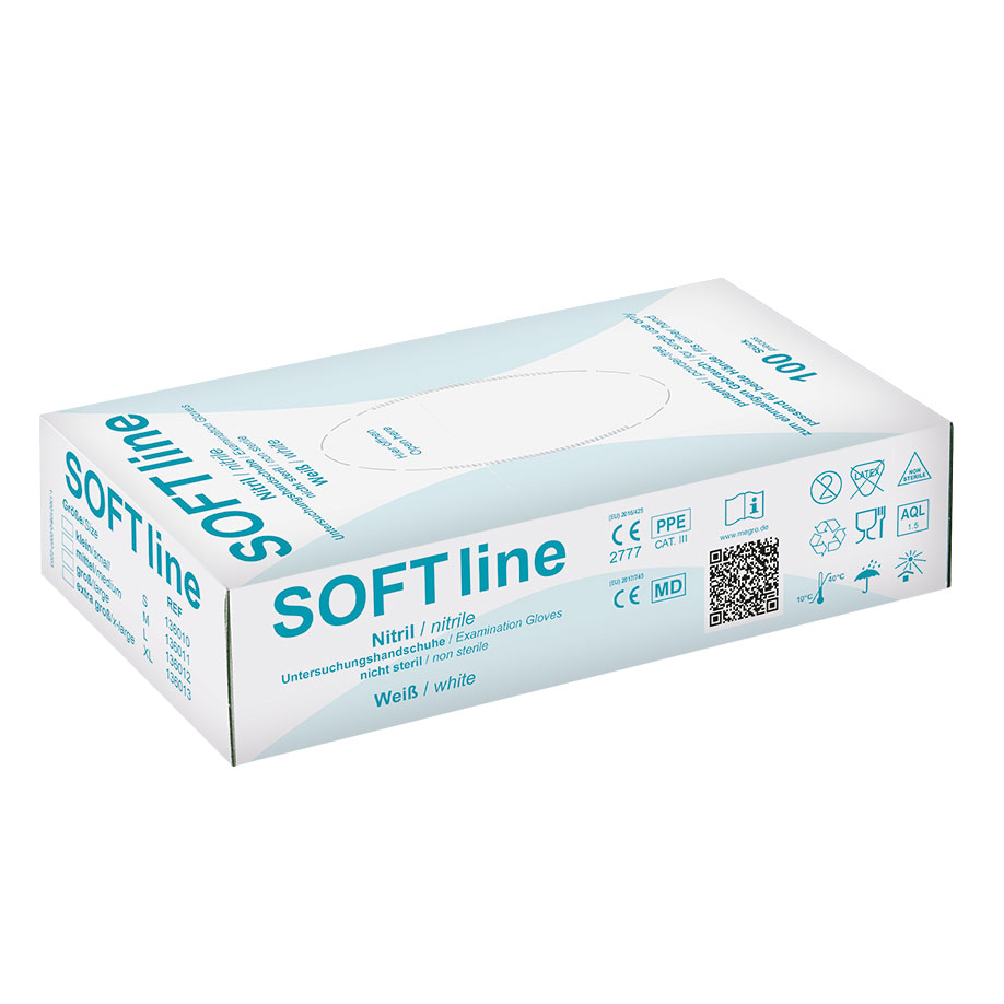 Produktinformationen "SOFT line Nitril U.-Handschuhe weiß, Gr. L unsteril puderfrei (100 Stck.)"