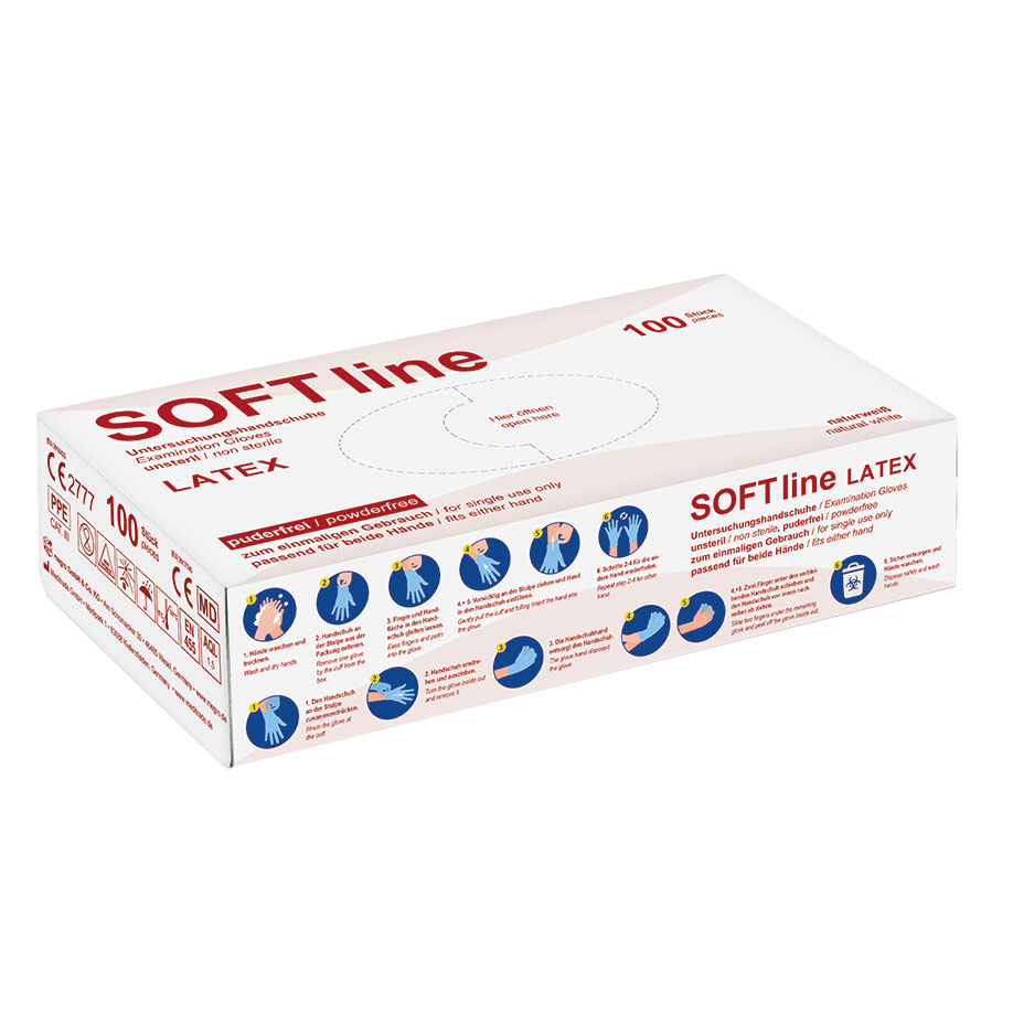 Produktinformationen "SOFT line U.-Handschuhe Gr. M, Latex, unsteril, puderfrei (100 Stck.)"