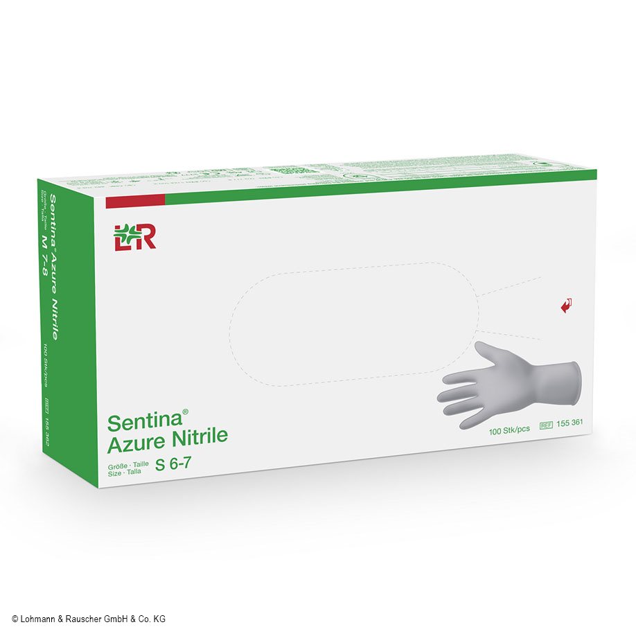 Produktinformationen "Sentina Azure Nitrile U.-Handschuhe unsteril PF Gr. 6-7 S (100 Stck.)"