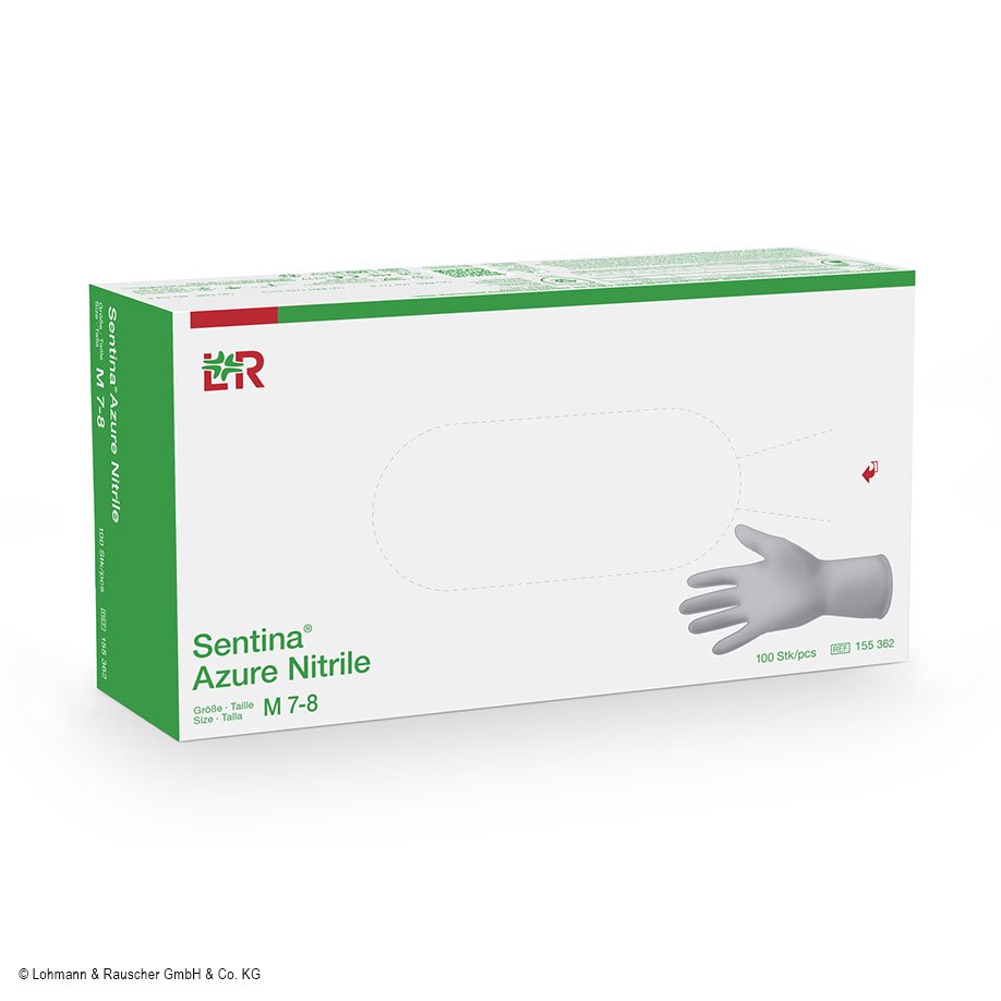 Sentina Azure Nitrile U.-Handschuhe unsteril PF Gr. 7-8 M (100 Stck.) UK = 10 Pack
