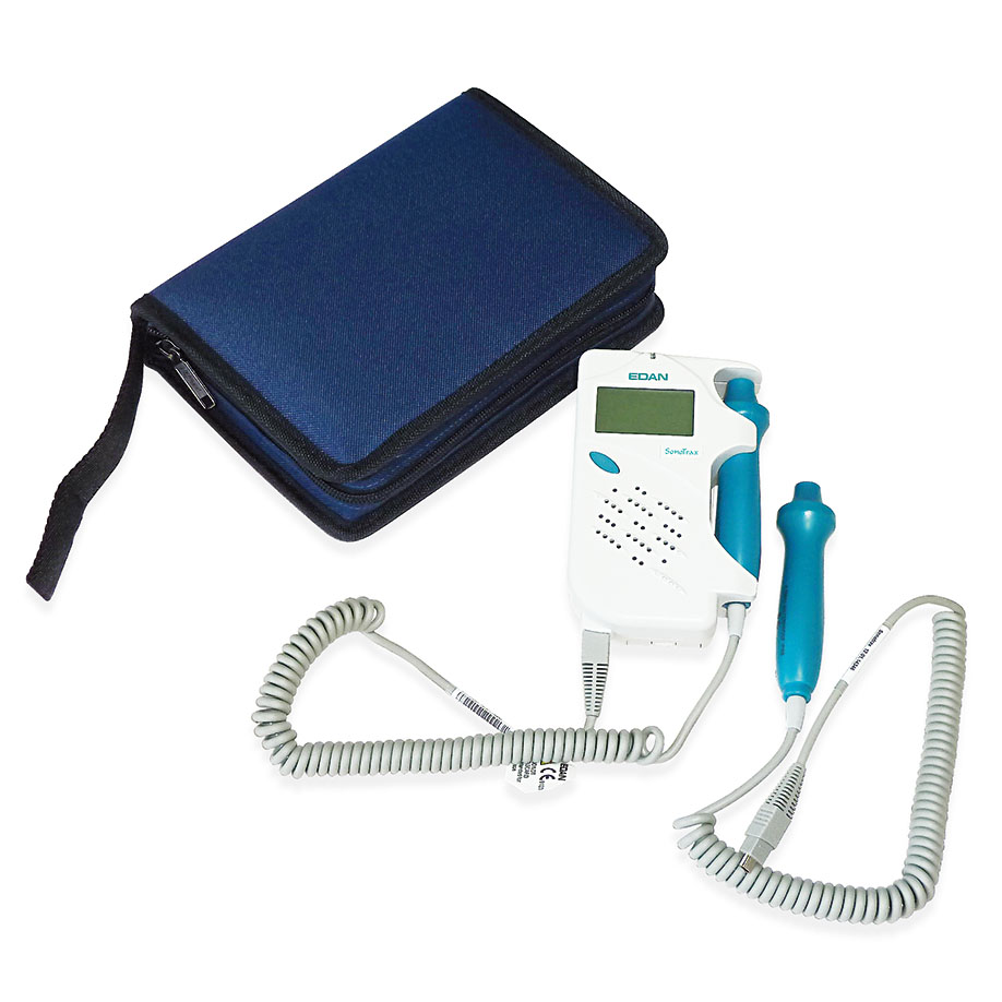 Der Taschendoppler ist ausgestattet mit zwei wechselbaren Gefäßsonden. Die Lautstärke ist stufenlos regelbar. Das beleuchtete Display zeigt zudem die Herzfrequenz und die Batteriekapazität an.