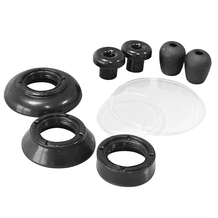 und 2 Paar schwarzen (weich/hart) Ohroliven, 100 % latexfrei und nickelfrei, große Membrane: 40 mm Ø, kleine Membrane: 26 mm Ø, Gesamtlänge: 75 cm, Gewicht: ca. 226 g