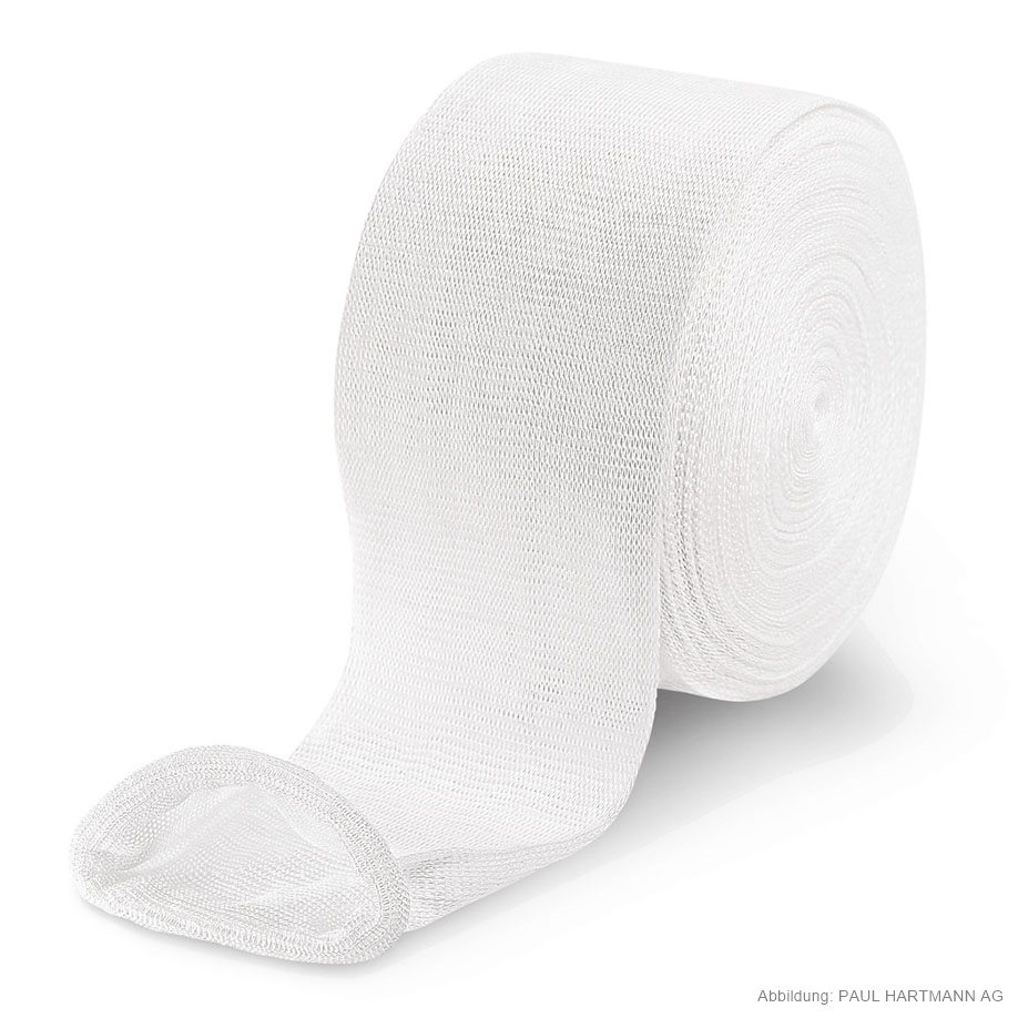 Nahtlos gestrickter Schlauchverband (70 % Viskose, 30 % Baumwolle) mit hoher Querdehnbarkeit, ohne Hilfsmittel einfach anzulegen, kann an jeder beliebigen Stelle durchtrennt werden, ohne dass Laufmaschen entstehen, faltenloser Sitz, durch geschlossene Oberfläche auch bei mechanischer Beanspruchung kein Lockern, sodass Wunden oder empfindliche Hautpartien zuverlässig geschützt werden, saugfähig, luftdurchlässig und sterilisierbar (Dampf A 134 °C).
