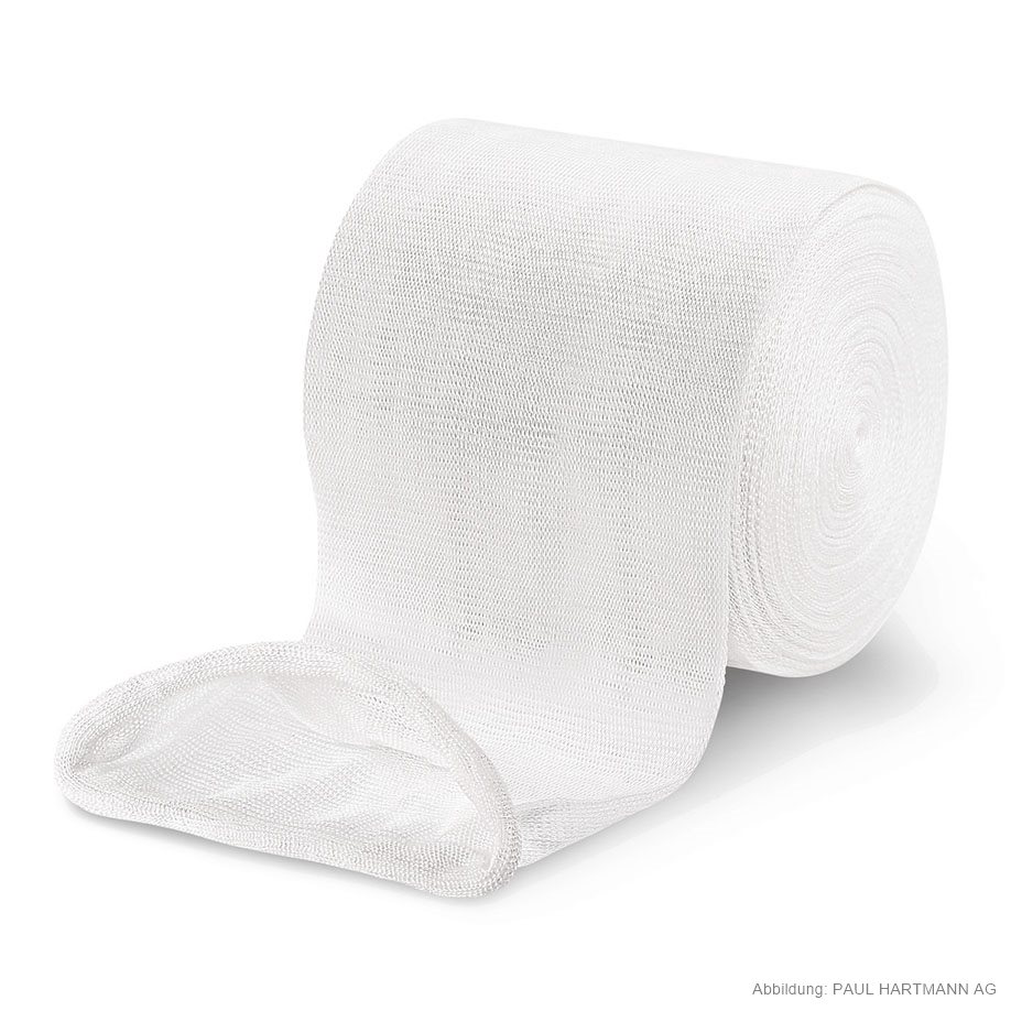 Nahtlos gestrickter Schlauchverband (70 % Viskose, 30 % Baumwolle) mit hoher Querdehnbarkeit, ohne Hilfsmittel einfach anzulegen, kann an jeder beliebigen Stelle durchtrennt werden, ohne dass Laufmaschen entstehen, faltenloser Sitz, durch geschlossene Oberfläche auch bei mechanischer Beanspruchung kein Lockern, sodass Wunden oder empfindliche Hautpartien zuverlässig geschützt werden, saugfähig, luftdurchlässig und sterilisierbar (Dampf A 134 °C).