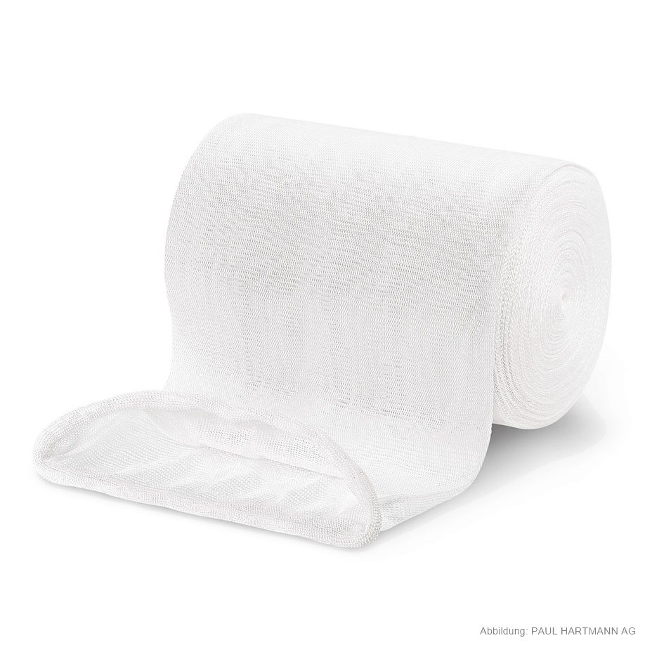 Nahtlos gestrickter Schlauchverband (70 % Viskose, 30 % Baumwolle) mit hoher Querdehnbarkeit, ohne Hilfsmittel einfach anzulegen, kann an jeder beliebigen Stelle durchtrennt werden, ohne dass Laufmaschen entstehen, faltenloser Sitz, durch geschlossene Oberfläche auch bei mechanischer Beanspruchung kein Lockern, sodass Wunden oder empfindliche Hautpartien zuverlässig geschützt werden, saugfähig, luftdurchlässig und sterilisierbar (Dampf A 134 °C).