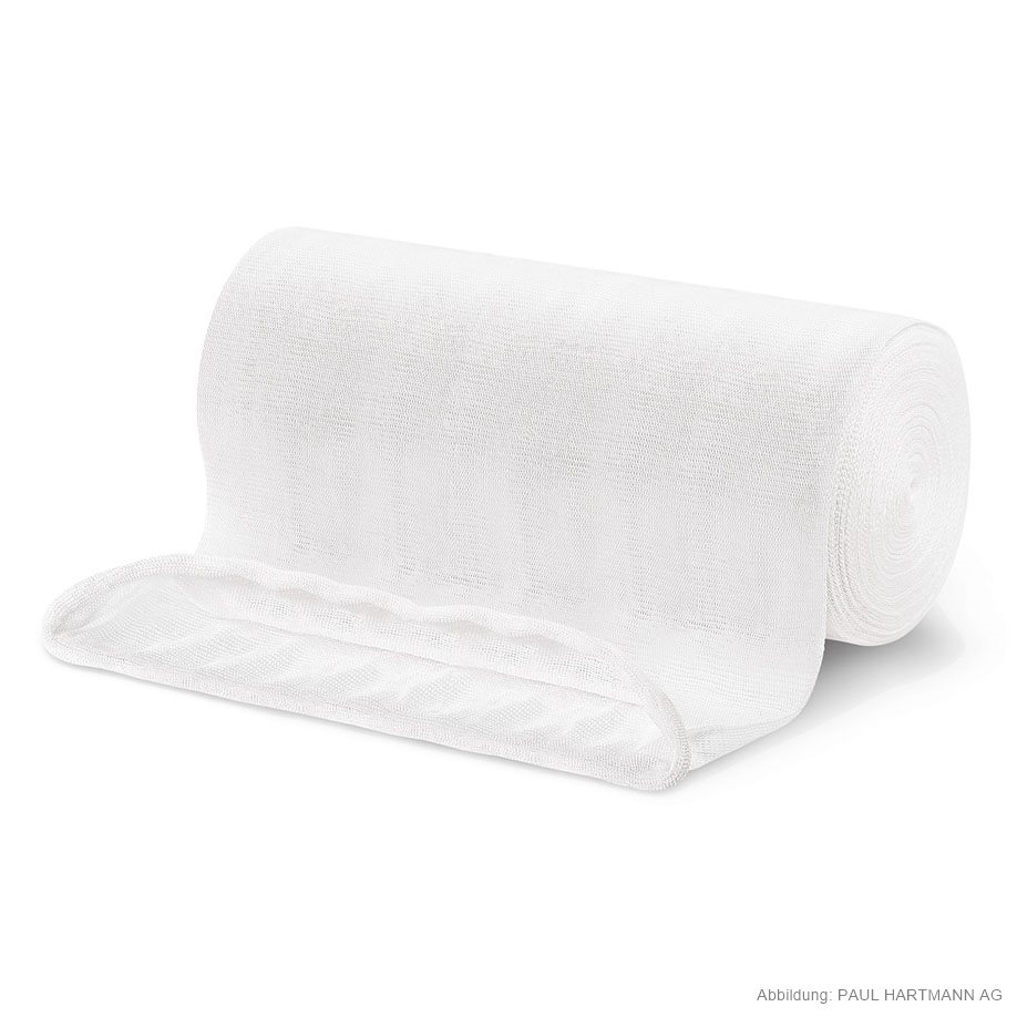 Nahtlos gestrickter Schlauchverband (70 % Viskose, 30 % Baumwolle) mit hoher Querdehnbarkeit, ohne Hilfsmittel einfach anzulegen, kann an jeder beliebigen Stelle durchtrennt werden, ohne dass Laufmaschen entstehen, faltenloser Sitz, durch geschlossene Oberfläche auch bei mechanischer Beanspruchung kein Lockern, sodass Wunden oder empfindliche Hautpartien zuverlässig geschützt werden, saugfähig, luftdurchlässig und sterilisierbar (Dampf A 134 °C).