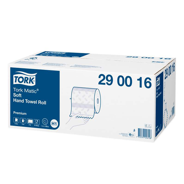 Rollenhandtuch für Tork Rollenhandtuchspender H1, TAD-Premiumqualität aus Zellstoff, die Tork Soft Prägung verleiht dem Handtuch mehr Volumen und eine außergewöhnliche Weichheit, extrem saugfähig, schnellste Wasseraufnahme bei höchster Reißfestigkeit, ideal für hoch bis normal frequentierte Waschräume sowie hygienesensible Bereiche, das Design des Handtuchs verbessert die optische Wirkung jeden Waschraumes, Rollendurchmesser 19 cm, 6 Rollen à 100 m (ca. 2450 Abschnitte) im Karton.