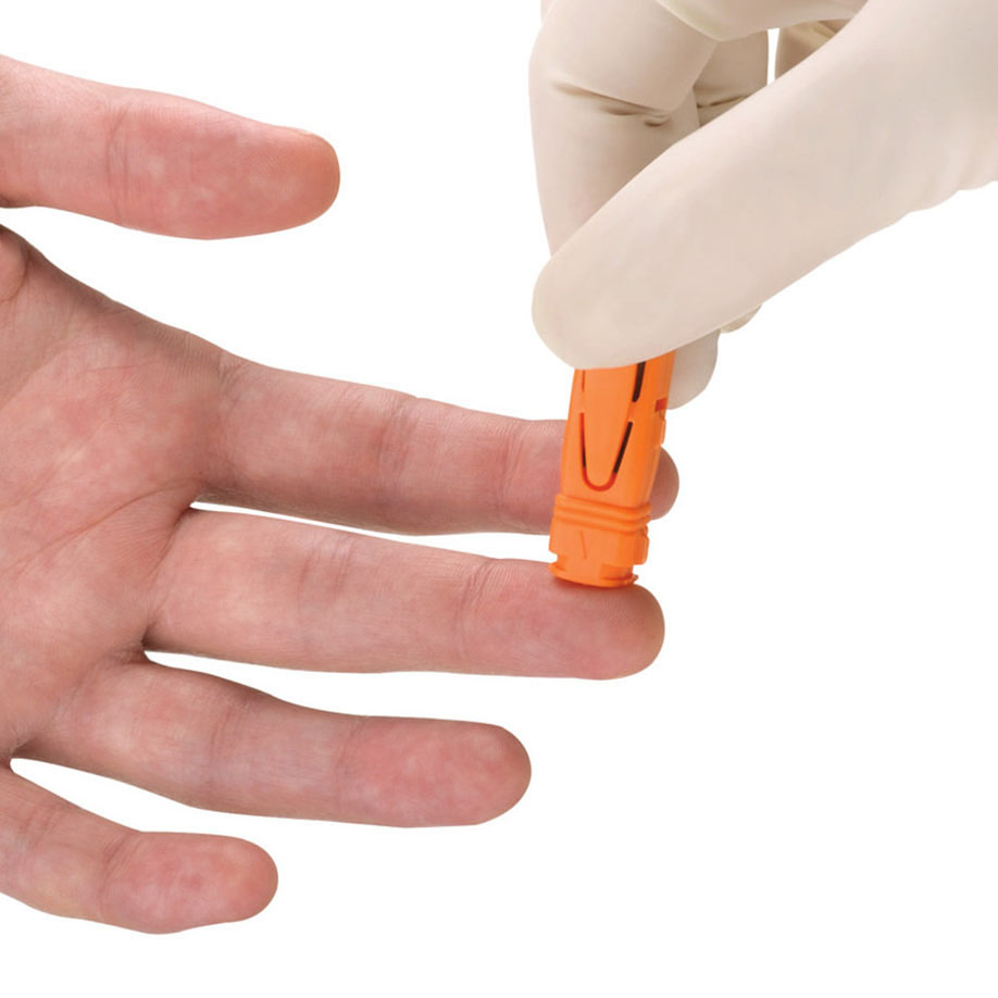 Unistik 3 ist voreingestellt und gebrauchsfertig. Einfach Kappe abdrehen und Probe nehmen. Die Unistik 3-Lanzettenspitze ist vor dem Gebrauch durch das Gehäuse abgedeckt und zieht sich unmittelbar nach dem Eindringen wieder in das Gehäuse zurück. Dadurch werden Nadelstichverletzungen und Kreuzinfektionen vermieden. Einstichtiefe: 2,0 mm. Für Patienten mit Hornhaut/Hautverdickungen und alle Untersuchungen die eine höhere Blutmenge erfordern. Durchschnittliches Blutvolumen 60 µl - 100 µl.