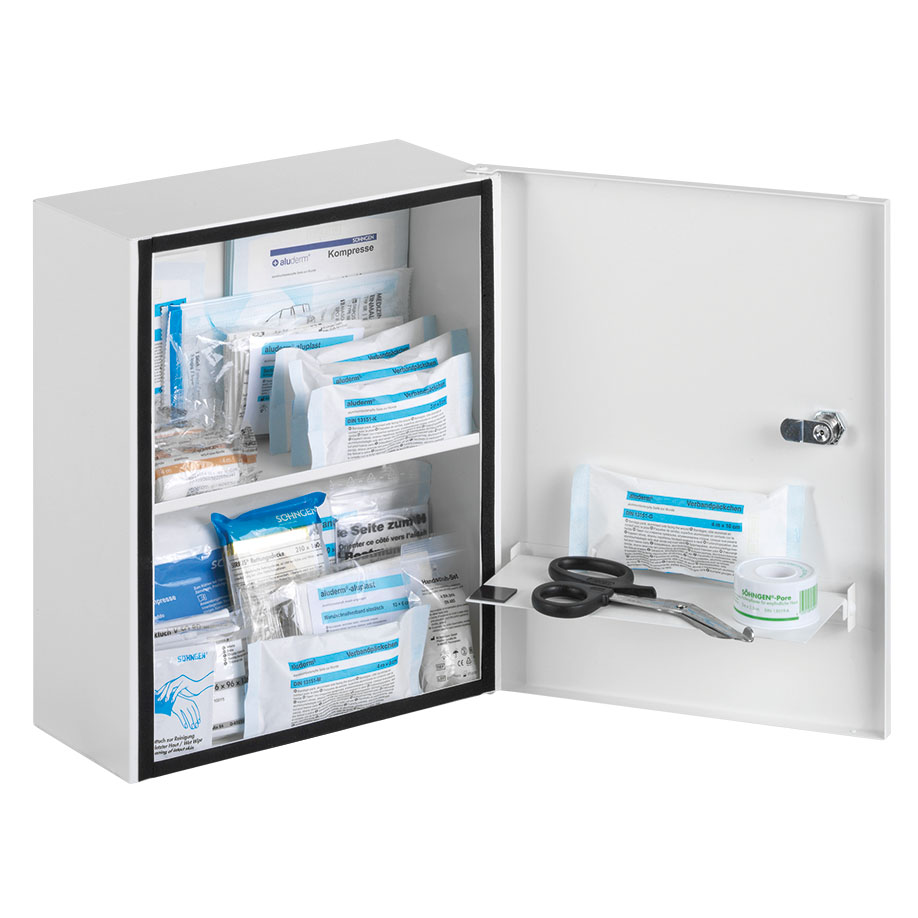 Produktinformationen "Verbandschrank HEIDELBERG Norm weiß mit Füllung Norm DIN 13157"