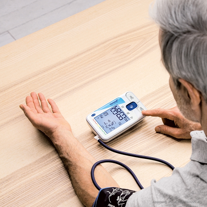Vollautomatisches Oberarm-Blutdruckmessgerät mit Duo Sensor Technologie, einer Kombination aus oszillometrischem und Korotkoff-Messverfahren. Erkennt Herzrhythmusstörungen (Arrhythmien). Erleichtert korrektes Messen dank patentierter Secure fit Manschette, Manschettensitzkontrolle und Ruheindikator. Großes beleuchtetes Display zum leichten Ablesen von gemessenen Werten. Anzeige von zu hoher oder zu niedriger Umgebungstemperatur. Einfache Messwert- Analyse per Ampelsystem. Einfaches Speichern der Daten mit der Veroval® medi.connect Software. Daten kombinierbar mit allen Veroval® Geräten, z. B. Waage und Aktivitätsarmband. USB-Kabel, "Secure fit"-Manschette, large 32-42 cm und 4 x 1,5 V AA Batterien inklusive.
