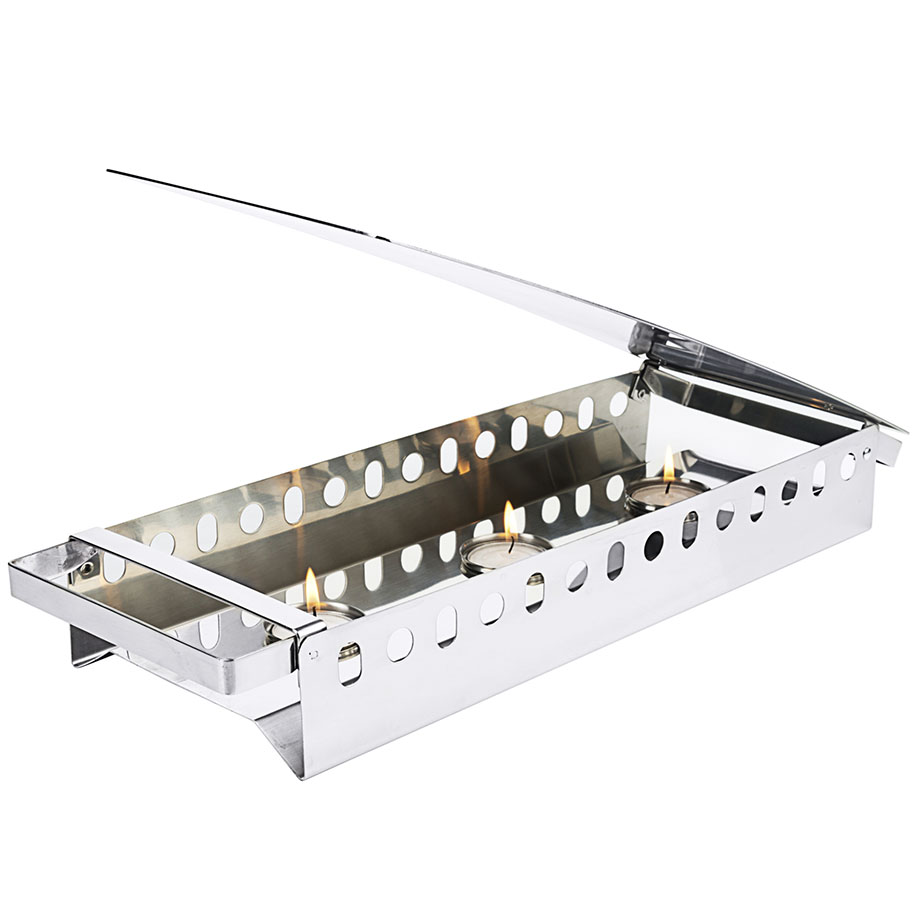 Produktinformationen "Warmhalteplatte, 45 x 18 x 6,5 cm mit drei Teelichten"