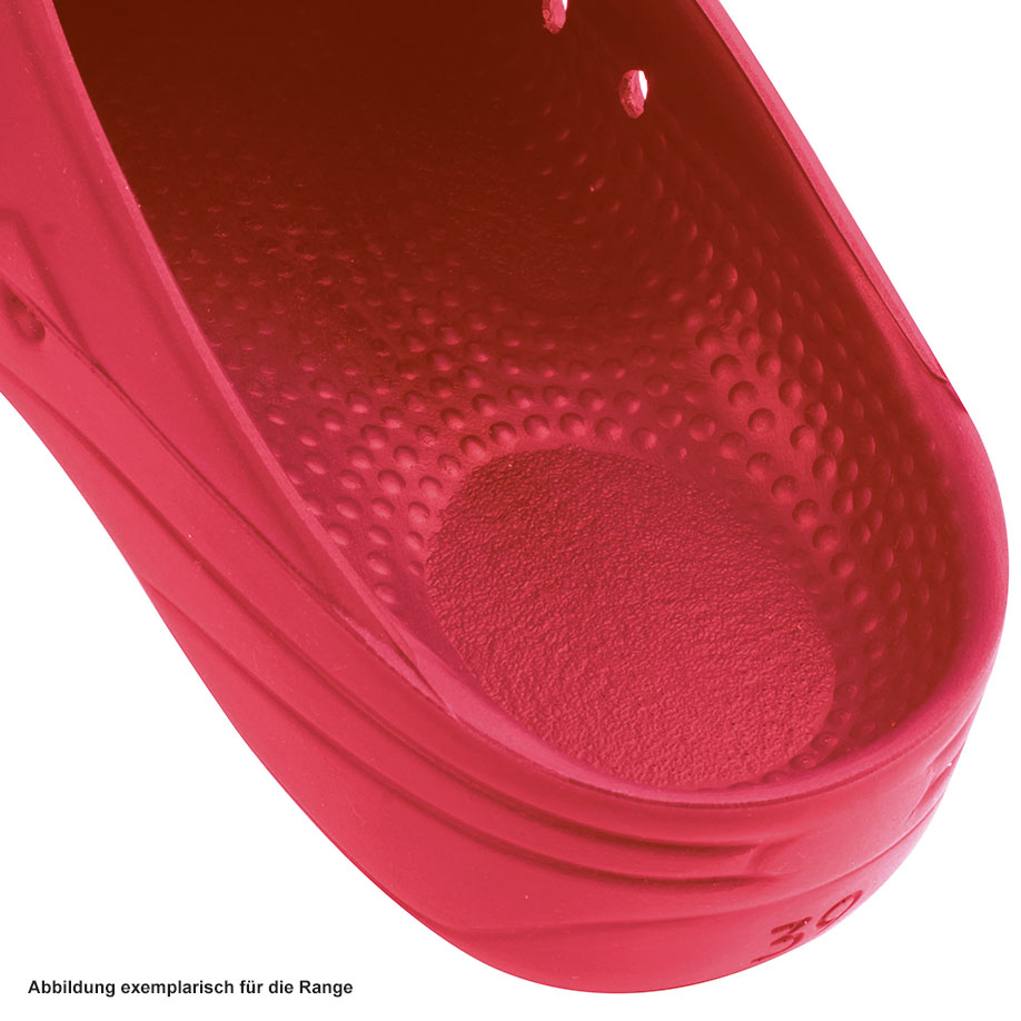 Die mediPlogs OP-Schuhe sind klimatisiert durch ein spezielles Lüftungssystem, dieses sorgt für ein angenehmes Fußklima. Die Ausprägungen der seitlichen Lüftungslöcher verhindern weitgehend das Eindringen von Flüssigkeiten in die Schuhe. Die Fersenerhöhung und das orthopädische Fußbett sorgen für ermüdungsfreies Gehen und Stehen. Dadurch wird der Bewegungsapparat am OP-Tisch entlastet. Dieses Produkt ist aus antistatischem PU (Polyurethan) gefertigt und bis 60°C waschbar. Es ist FCKW-frei geschäumt.